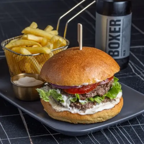 Notre burger Superior est une vĂ©ritable explosion de saveurs. Nous utilisons deux steaks de viande de qualitĂ© supĂ©rieure, fraĂźchement hachĂ©s pour garantir une saveur irrĂ©sistible Ă chaque bouchĂ©e. Le pain est cuit sur place pour un croquant parfait, les viandes sont cuites Ă la perfection pour un goĂ»t savoureux et juteux. Avec des options de garniture variĂ©es, venez dĂ©guster lâexpĂ©rience burger ultime chez nous ! 2x120g viande de boeuf.